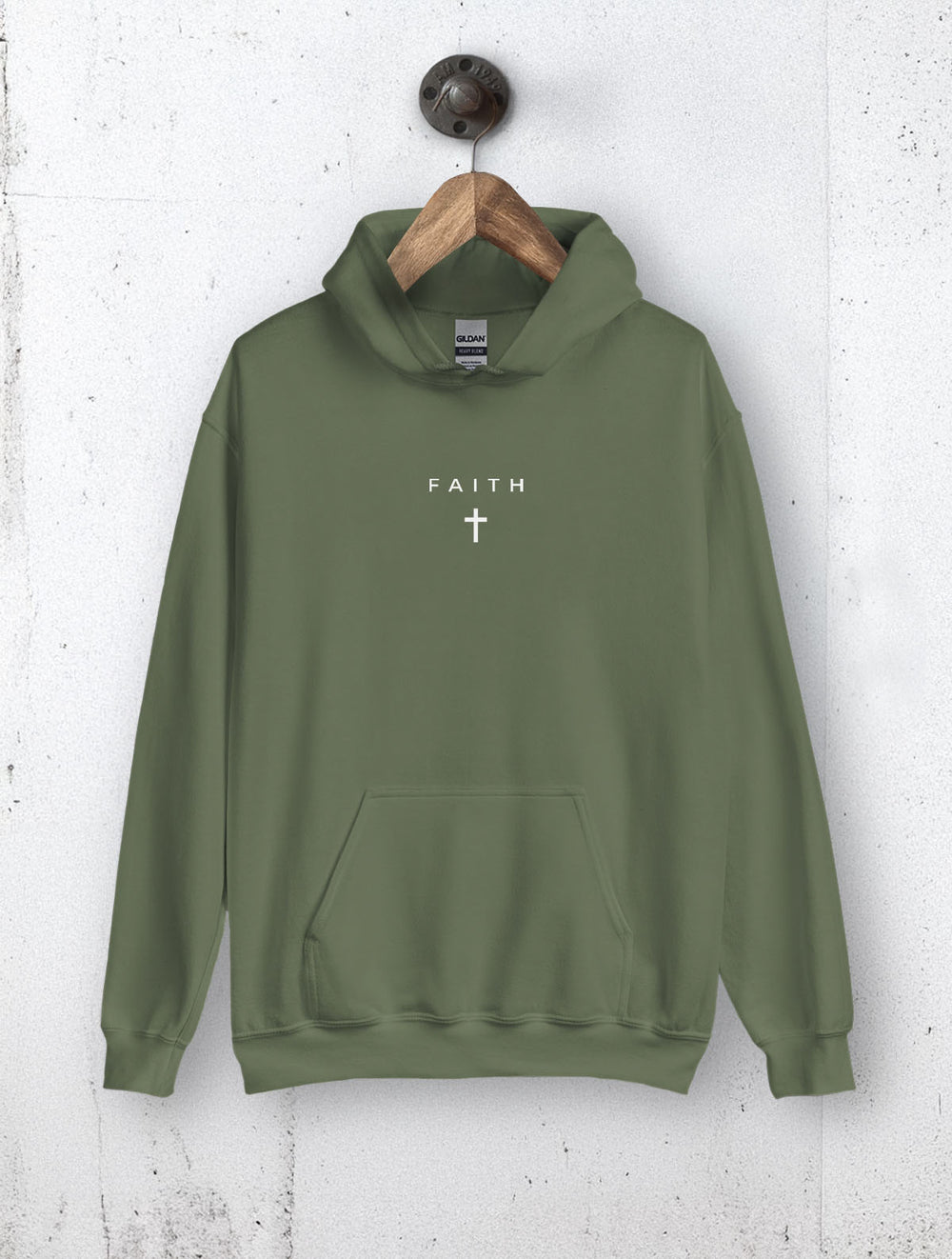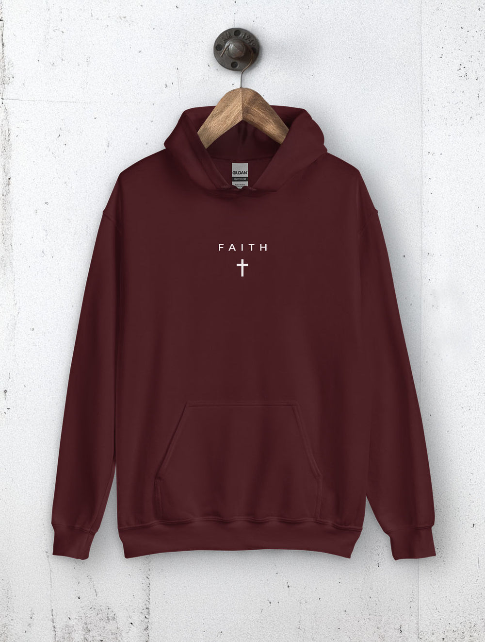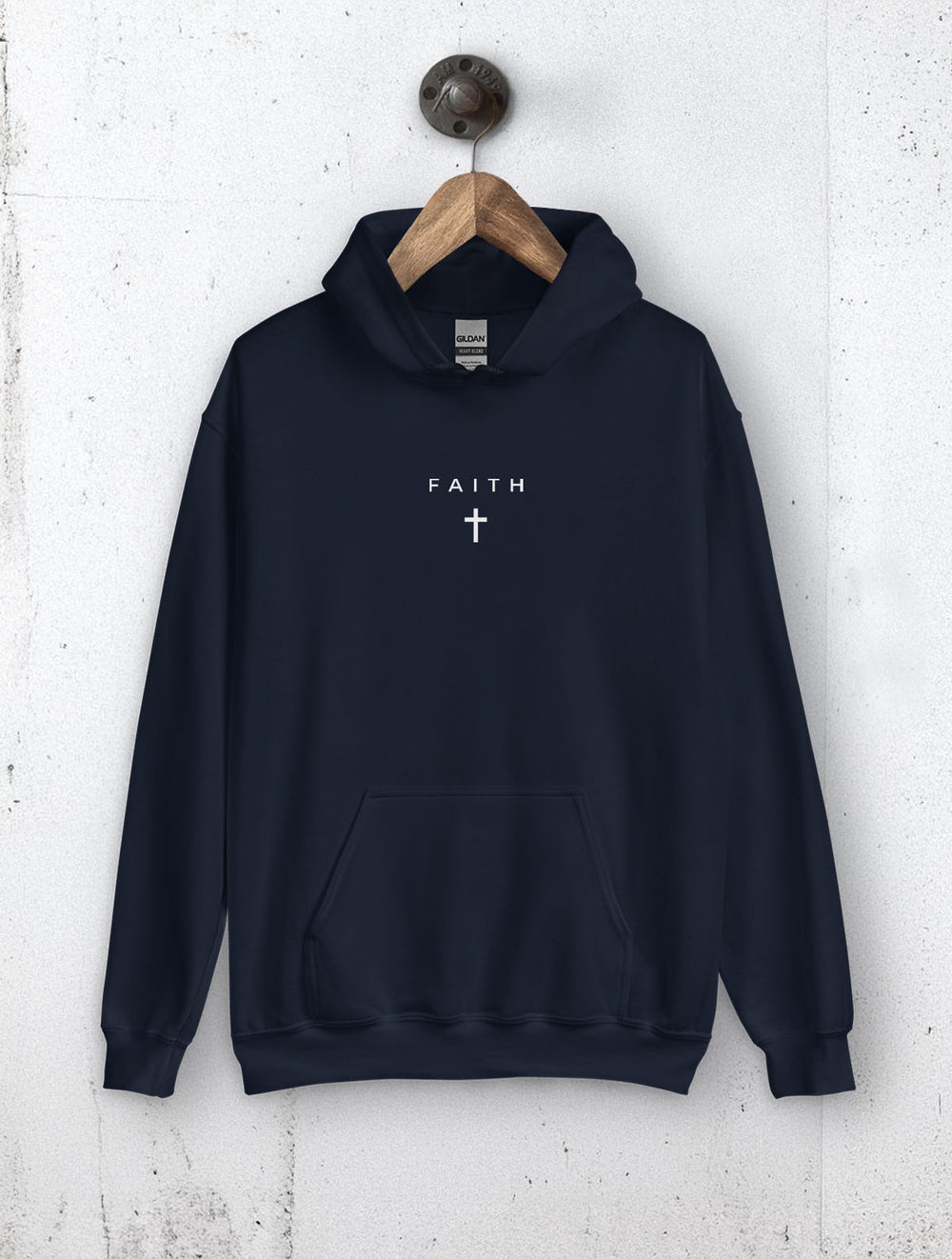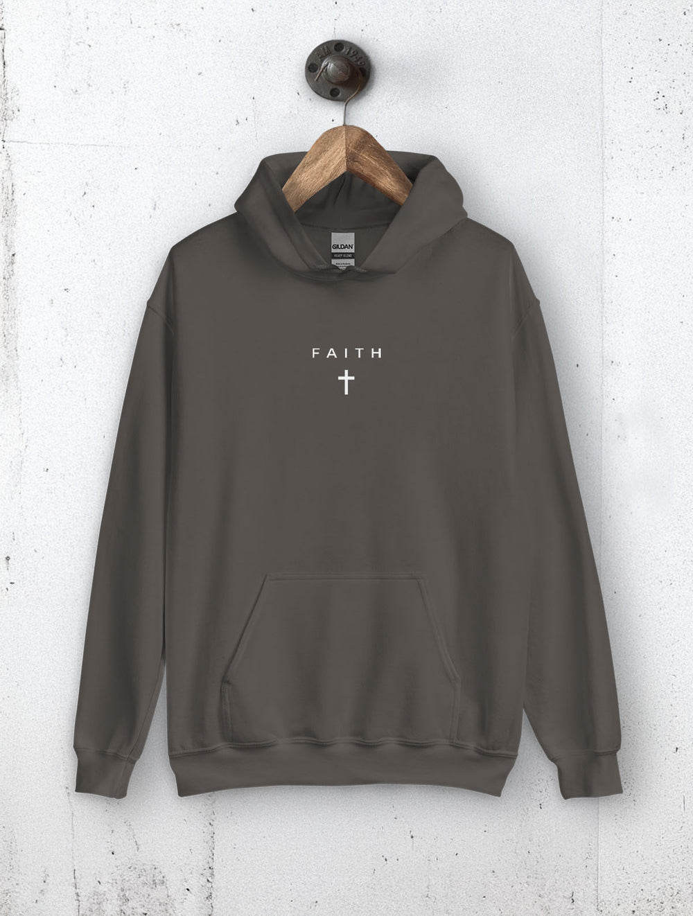 'Faith' in simple, clean font with a small cross graphic underneath.