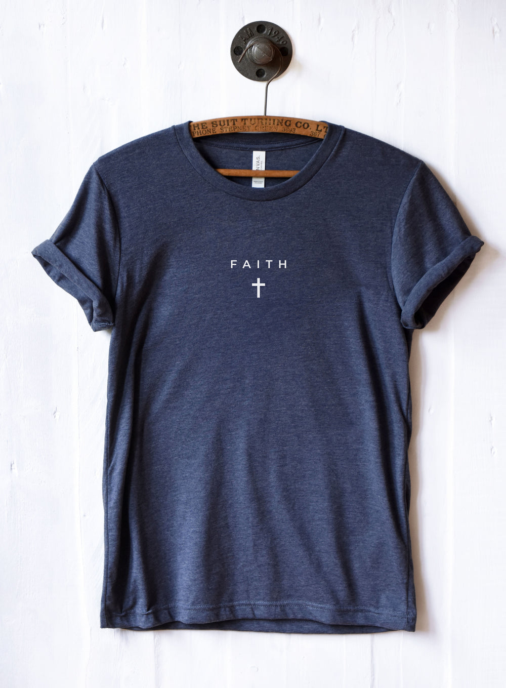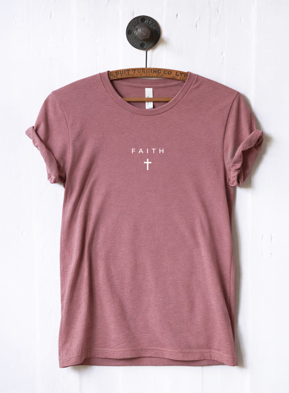 'Faith' in simple, clean font with a small cross graphic underneath.