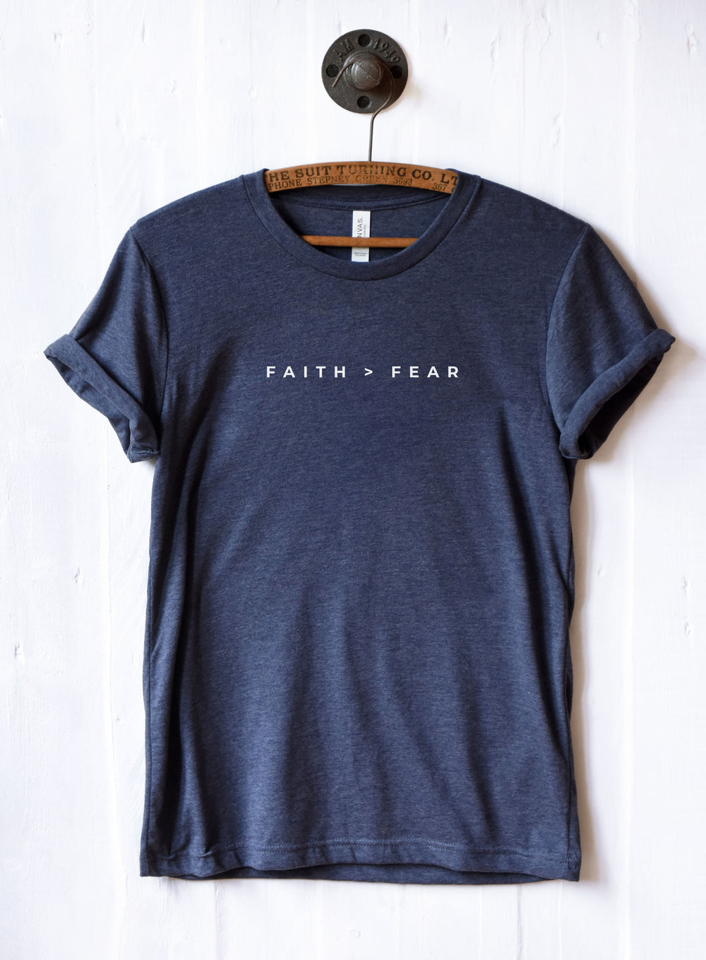 'Faith > fear' in simple, clean font.
